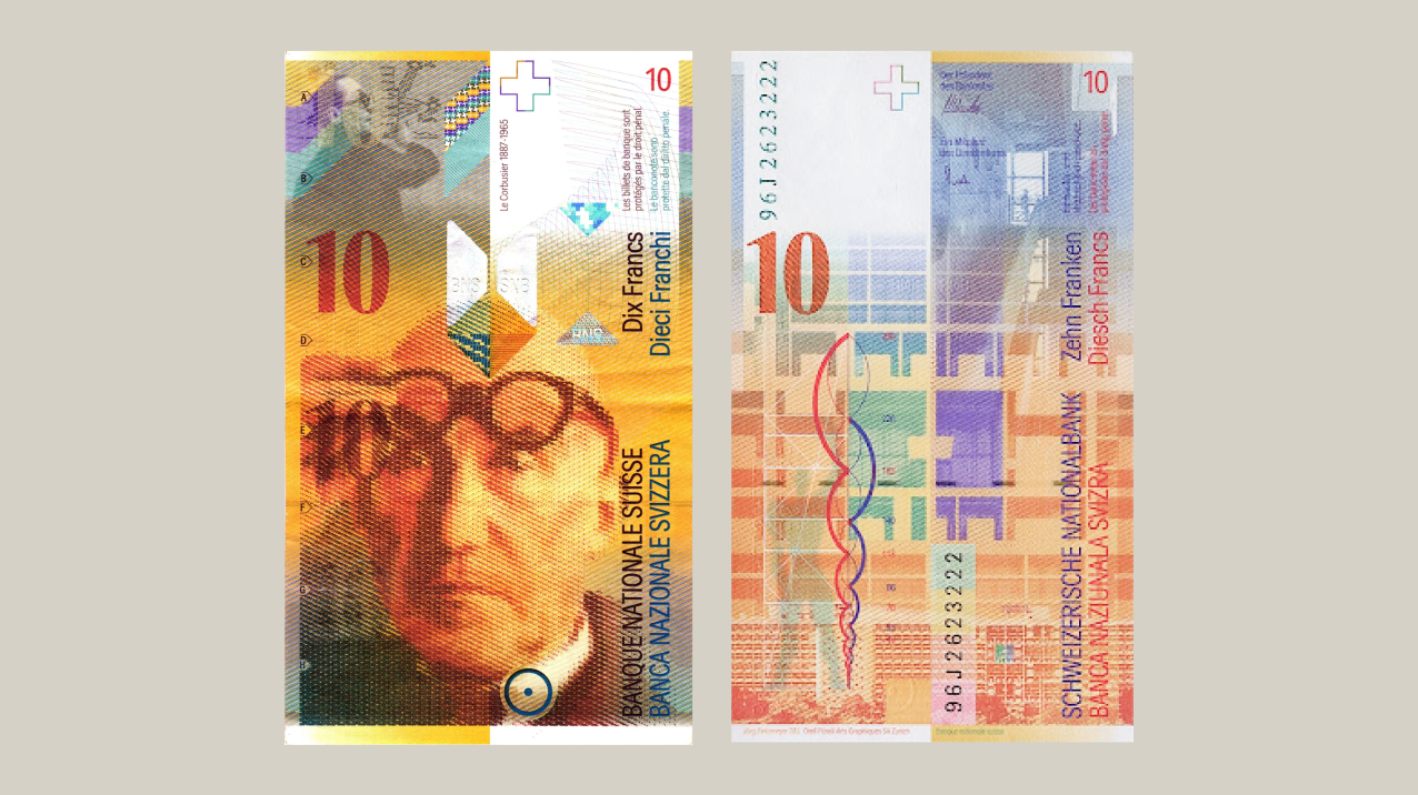 스위스 10프랑에 새겨진 르 코르뷔지에(좌)