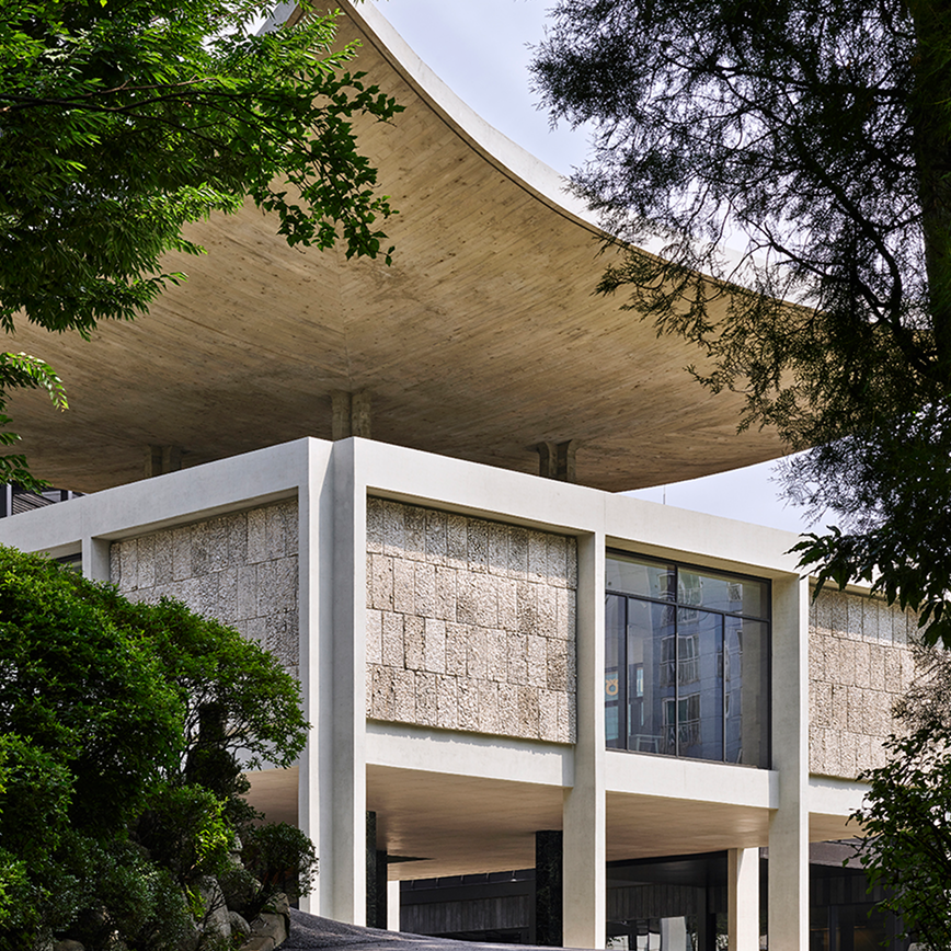 특히 리모델링을 거치며 그의 철학은 오늘의 시점에서 되살아났다. 조민석과 윤태훈은 원작의 형식을 흉내 내기보다, 그가 가졌던 ‘조화의 태도’를 이어받았다. 새로 지어진 건물들은 주인공을 빛내는 조연처럼 행동한다. 라 투르는 묵직한 어둠으로 복원된 곡면 지붕을 배경 삼고, 라 주테는 넓은 캐노피로 방문객을 환대하며, 세 건물은 과거와 현재가 공명하는 풍경을 만들어냈다.